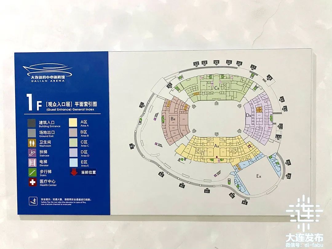 观众入场后要留意距离自己座位最近的安全出口和逃生通道位置,场馆各处均设有荧光绿色逃生指示标识和疏散路线图。
