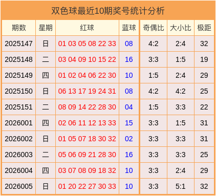开奖回顾:双色球2026005开奖号码为01、20、22、27、30、33+10。其中大小比为5:1,和值为133。