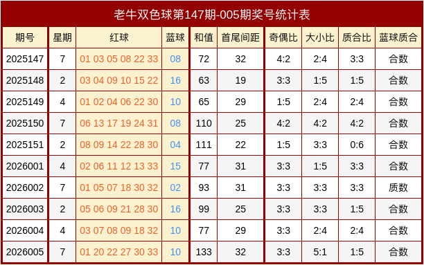 上期回顾:双色球2026005期开出奖号:红球01、20、22、27、30、33,蓝球10。