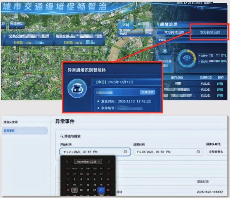 这一预警来自异常拥堵识别智能体。系统通过实时分析道路视频流数据,迅速捕捉到车辆异常停驶、车流突增等异常信号,并第一时间向指挥中心发出提醒。